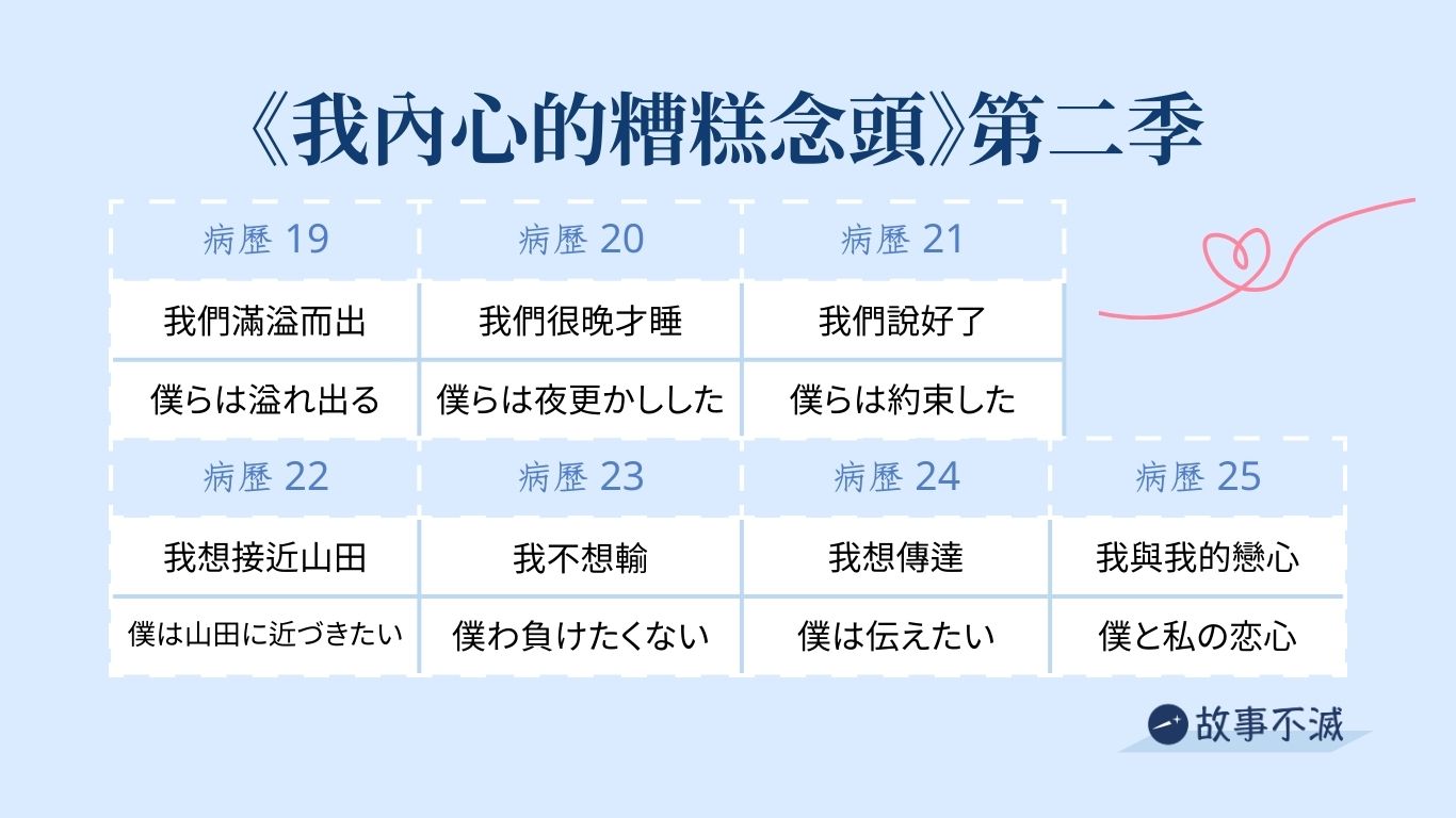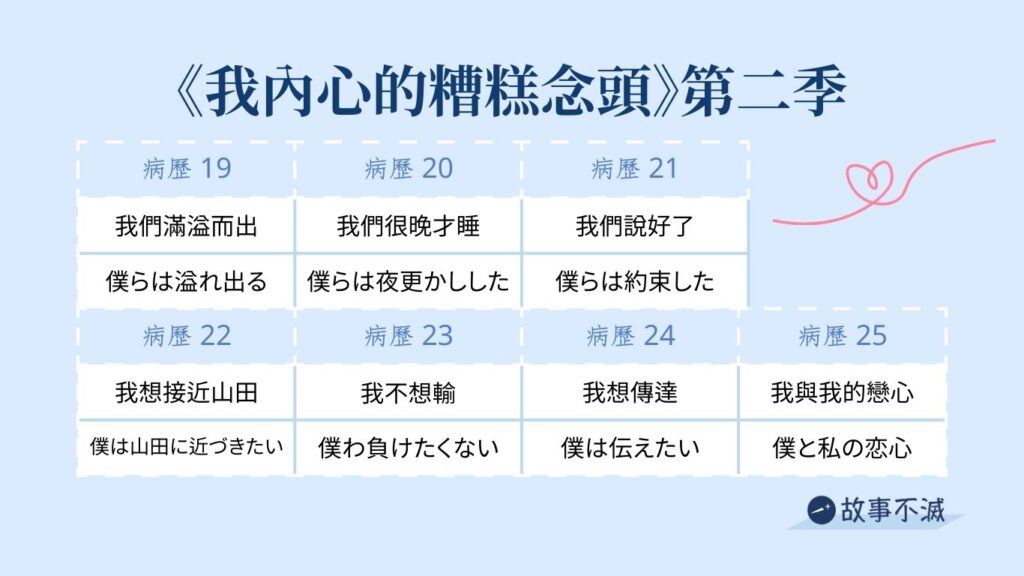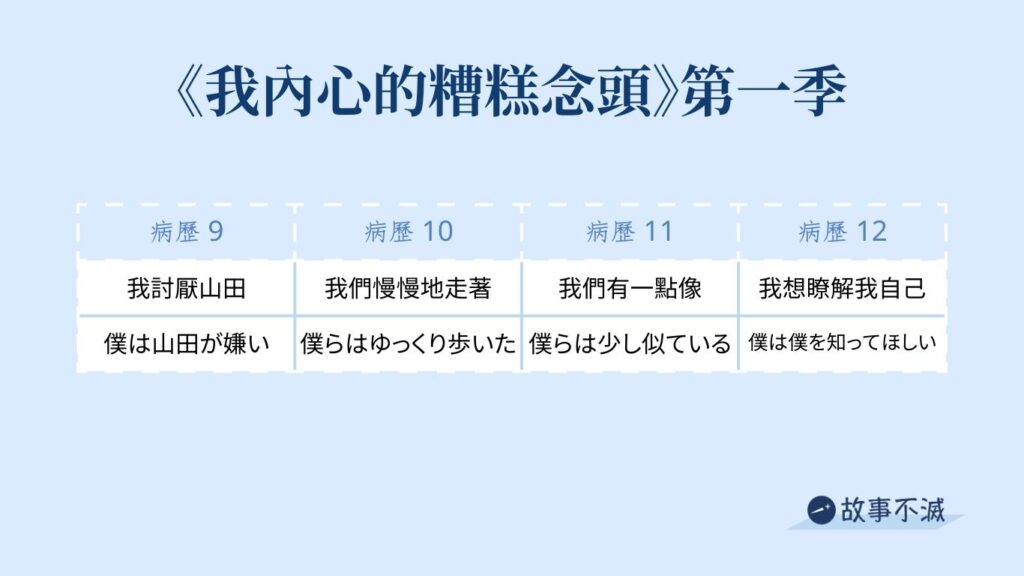 第 3 集意識到自己喜歡山田之後,病歷 4 ~ 8 都在講市川喜歡山田的念頭。